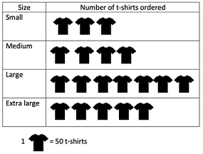 The given table shows the number of t-shirts a school ordered. Find the number of t-shirts ordered for the size - large and extra-large: ![]() |