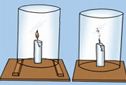 Look at the picture given below. After covering the lighted candle with a glass jar, it went off and stopped burning. ![]() |