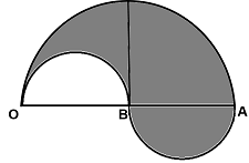 The boundary of the shaded region in the given diagram consists of three semi-circular arcs, the smaller ones being equal. If the diameter of the larger arc is 10 cm, the area of the shaded region is (π = 3.14): ![]() |