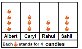 Look at the image given below and answer the following question: How many candies should Albert give Rahul so that they both have an equal number of candies? ![]() |