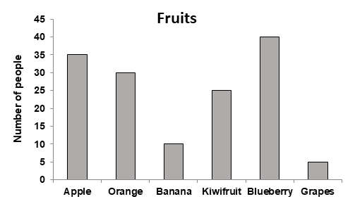 The given graph shows the fruit preferences of people. What is the ratio of preference of banana over kiwifruit among people? ![]() |