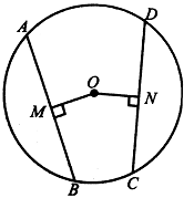 In the given figure, O is the centre of the circle. AB and CD are its two chords. If OM Ʇ AB, ON Ʇ CD and OM = ON, then which of the following is correct? ![]() |