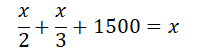 Write the expression for the following: A man has $x with him. He gave half to his wife, 1/3rd to his son and rest of $1500 to his daughter. |