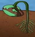 The image given here shows a plant when it starts to grow. Under normal conditions, which of the following will be the next to develop as the plant continues to grow? ![]() |