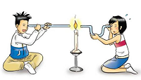 The picture below shows the first boy looking through a straight hose at the candle and the second boy trying to look through a bent hose at the candle. The second boy was unable to see the candle burning through the bent hose. What does this experiment prove? ![]() |