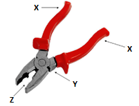 Clearly observe the placement of X, Y and Z in the example of pliers as shown in the image below. Label X, Y and Z correctly: ![]() |