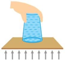 A glass tumbler filled with water was covered with a card-board and inverted as shown in the diagram below. The tumbler was held with the hand. After a minute, the hand was removed, it was observed that the card-board did not fall down. ![]() |