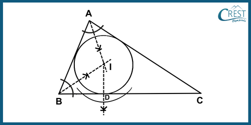 Step 1: Draw the angle bisectors of any two angles of a triangle meeting at I.