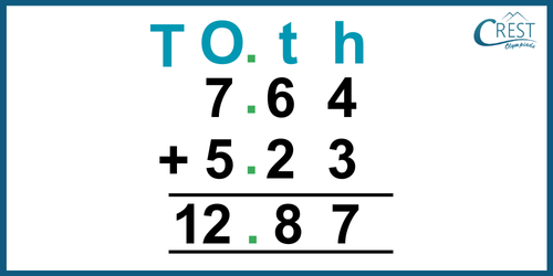 → Place the decimal point at the correct place to get the decimal number after addition.