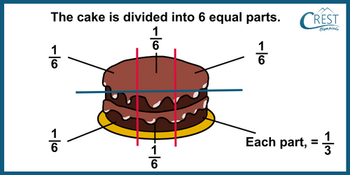 Example 2: if you have a cake and you plan to share it with your two friends, each slice of the cake can be represented as a fraction. You and your two friends (3 persons) eat 1 slice which is one-third of the cake.