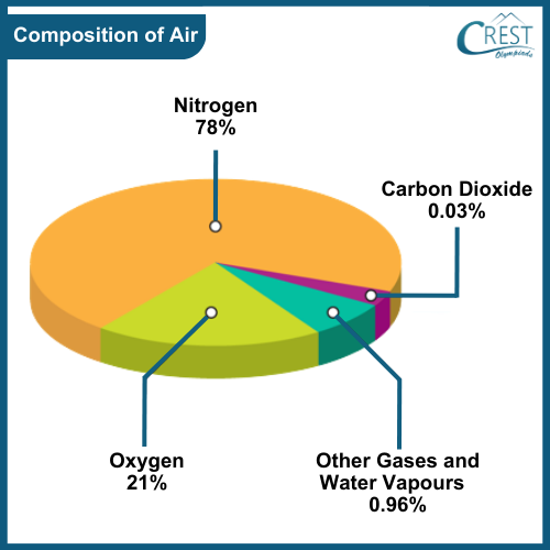 a) Air is composed of various constituents, including nitrogen, oxygen, carbon dioxide, water vapour, dust, and smoke.
