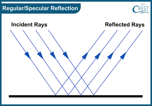 b) It results in a well-defined and clear reflection, where the angle at which light hits the surface (angle of incidence) is equal to the angle at which it bounces off (angle of reflection).