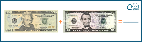 Explanation: 2 notes of $100 = 2 x $100 = $200.