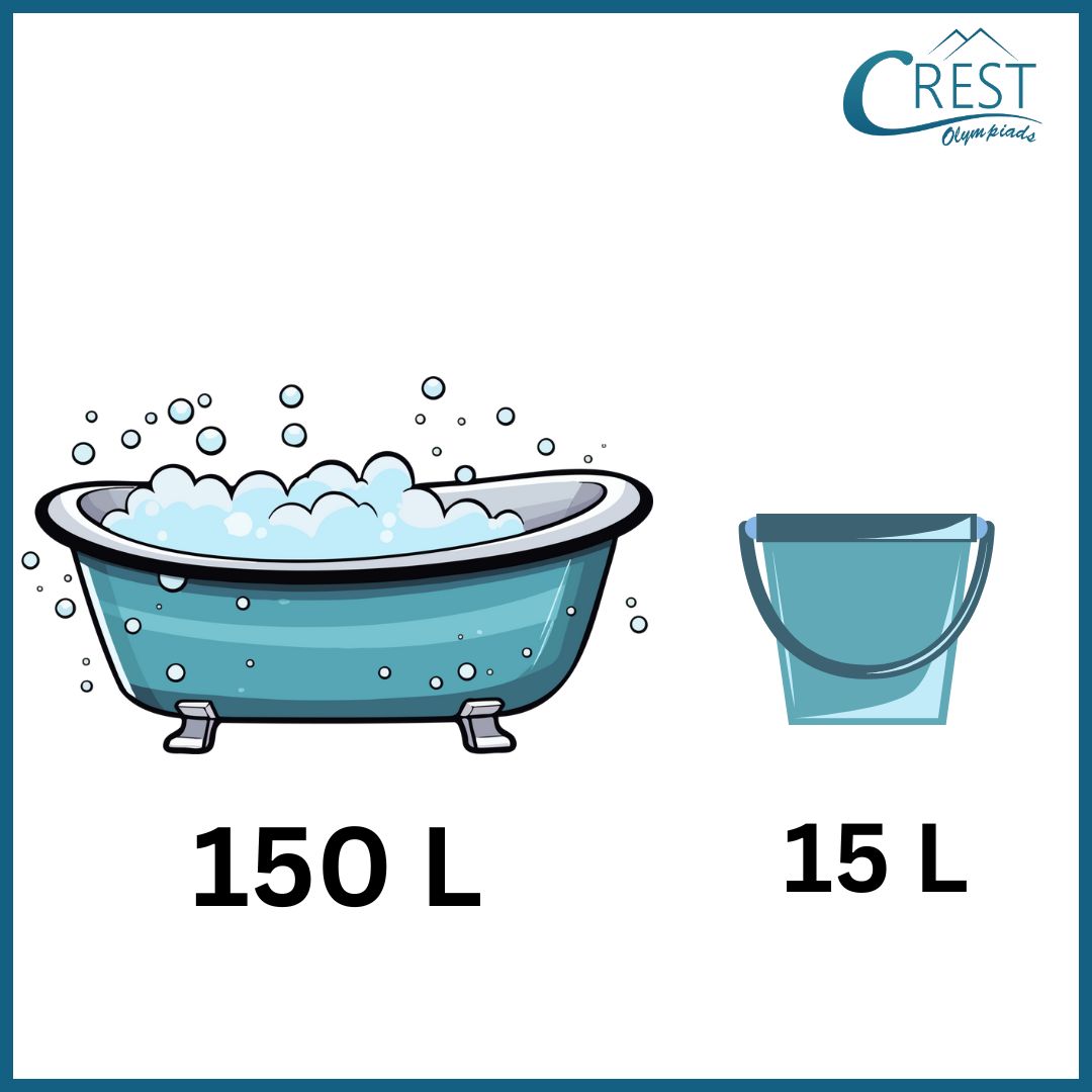 Explanation: Quantity of water a bathtub can hold = 150 L