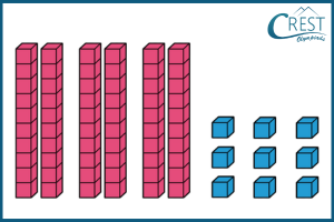 Explanation: Count the number of cubes, it is 69. To determine the number of ones in a given number, we look at the digit in the ones places. In the number 69, the digit in the ones places is 9, which represents 9 ones.